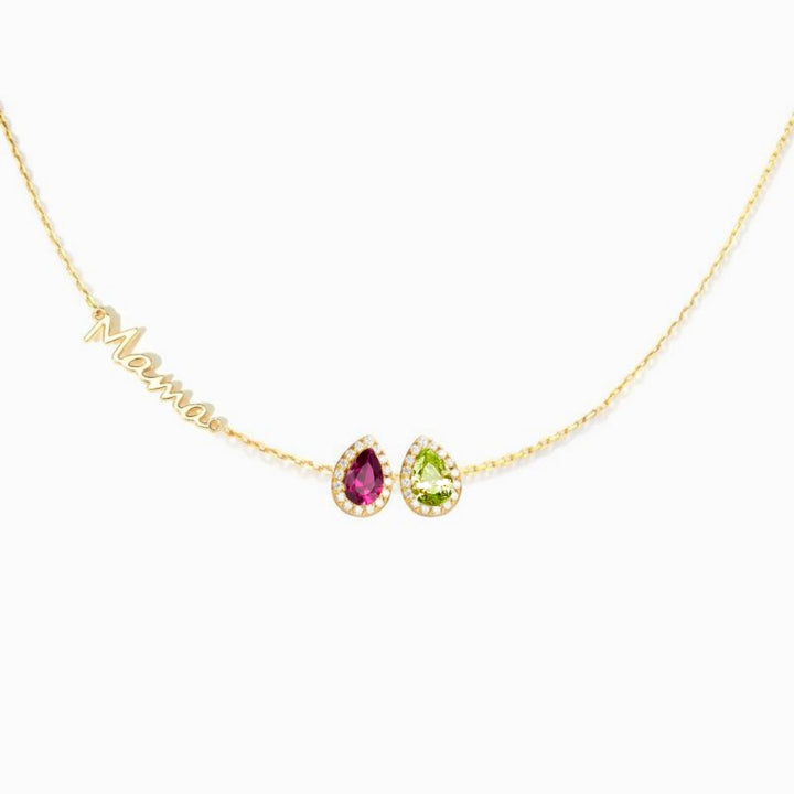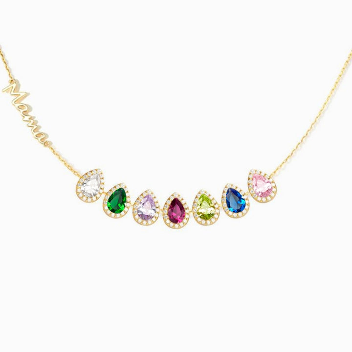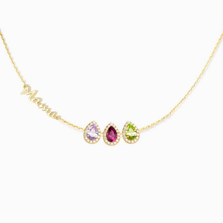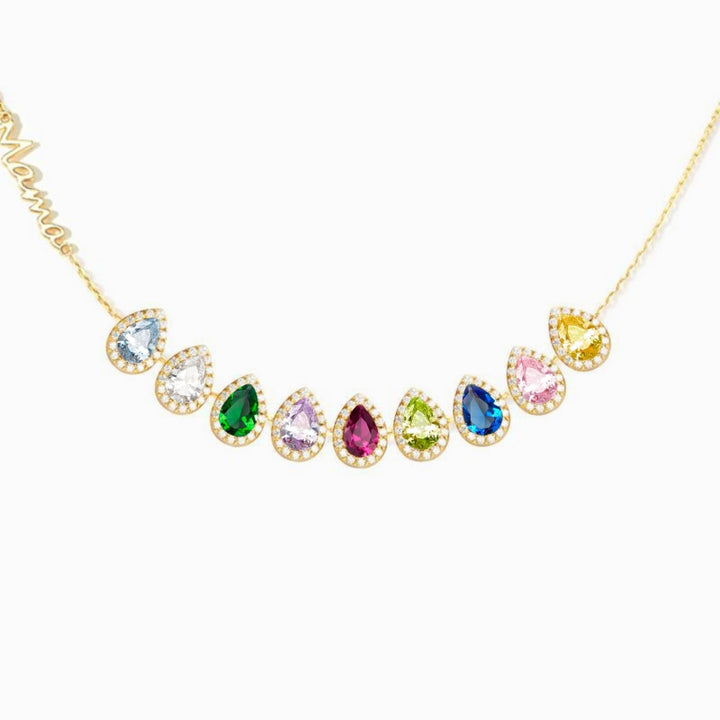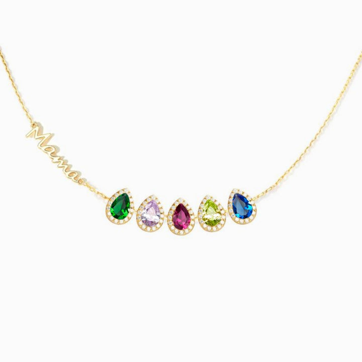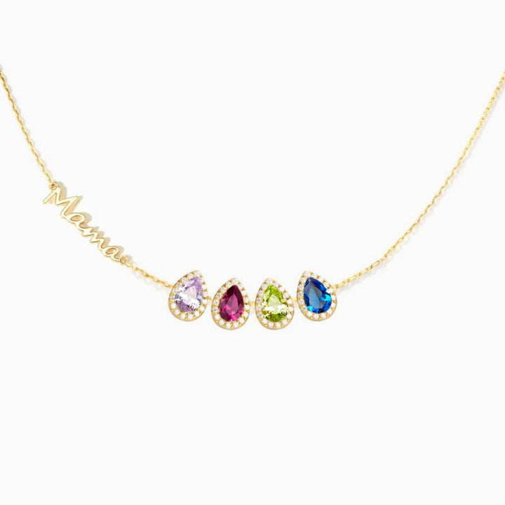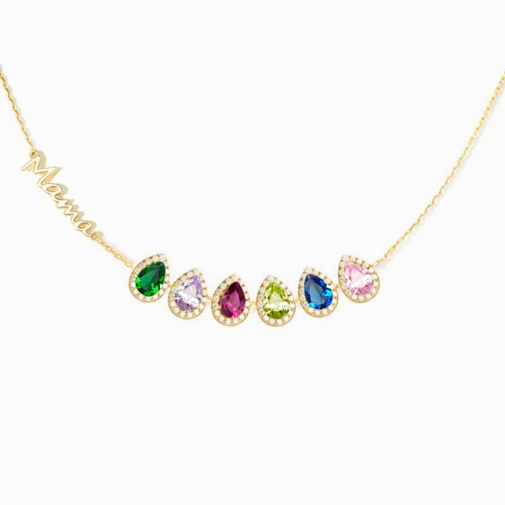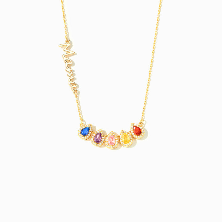 Customizable with each child's birthstone, show your love and your pride of being a mother with this beautiful and meaningful Teardrop Birthstone Mama/Nana Necklace. In those tears, an inexplicable connection is found and a bond forged forever. They are tears of pure joy. Let those tears dance the melody of happiness around your neck.