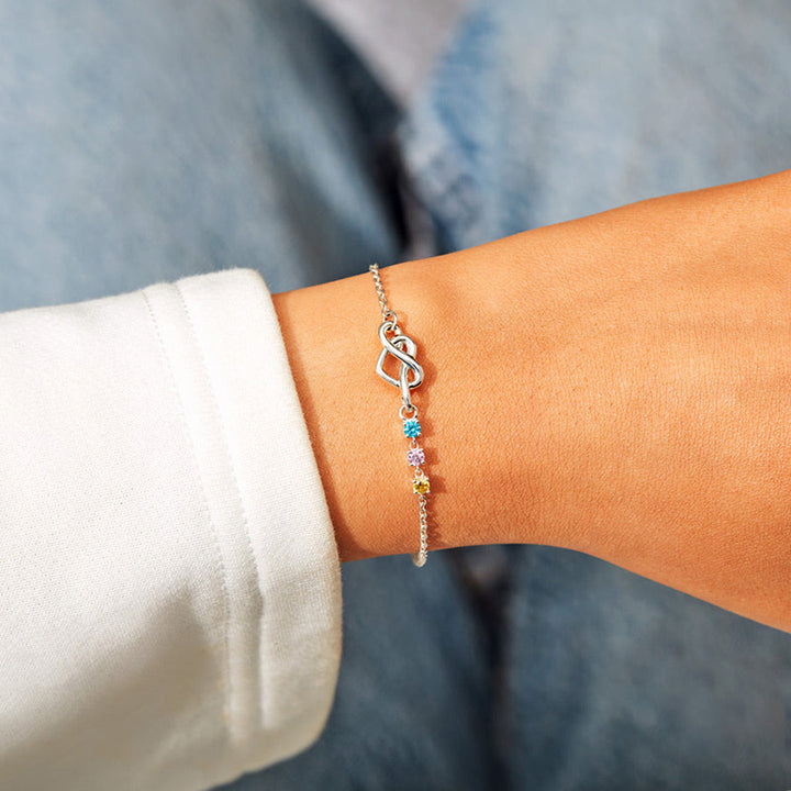 Personalized 1-8 Birthstones Heart Knot Bracelet